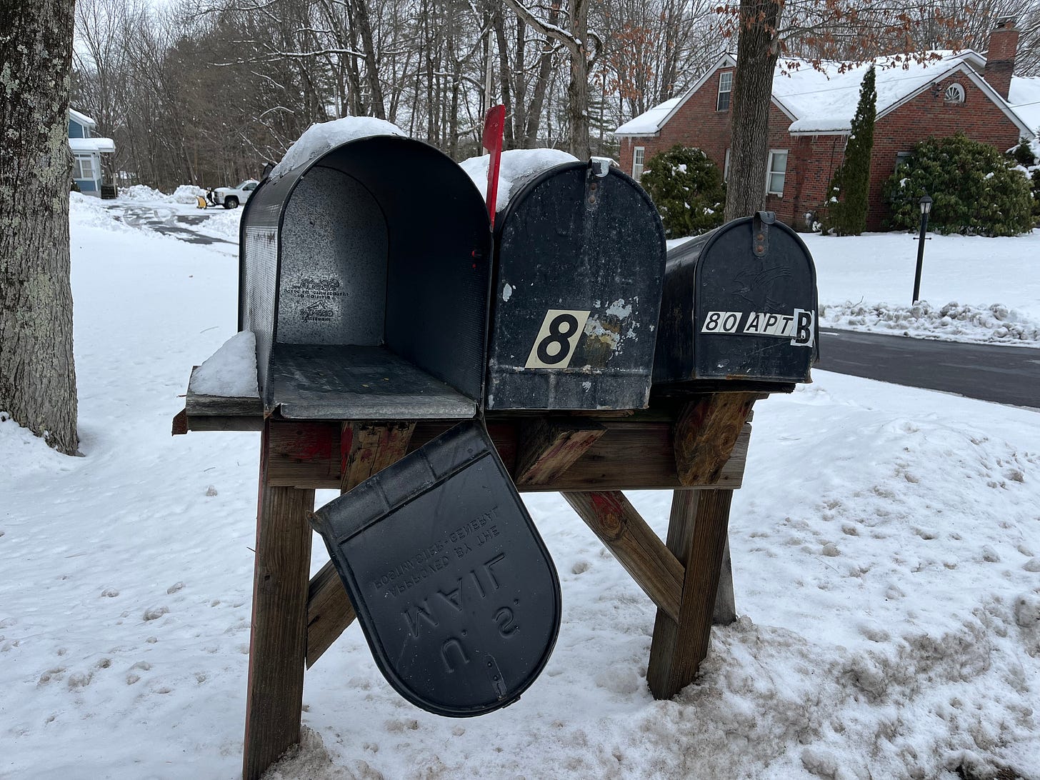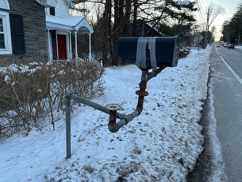 Some mailboxes are just in the wrong place at the wrong time. One friend in rural Saratoga County told me this is the first year that her mailbox hasn’t been hit. “We’re on a county route, so every year a Saratoga County crew shows up, and either fixes the post or gives us a whole new mailbox and post.”