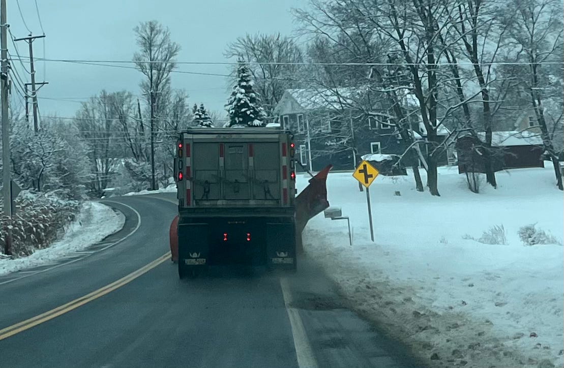 Inexperienced drivers, Bill says, are more likely to hit a mailbox, though he’s found a way to cut down on the number of boxes hit by new plow drivers. “They learn very, very rapidly,” he says, “because my policy here is that if you hit the mailbox, you’re the one that’s going to go out and fix it.”