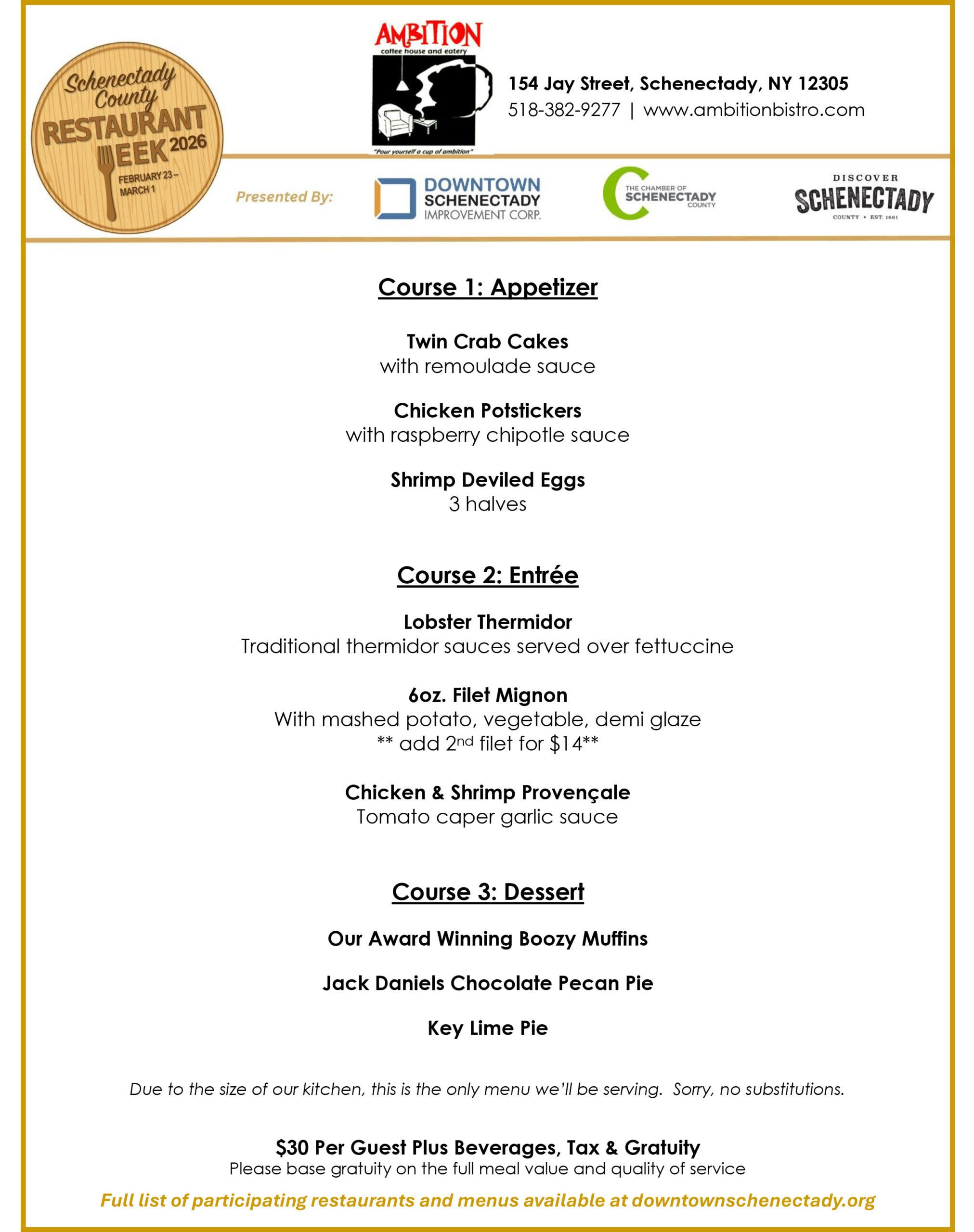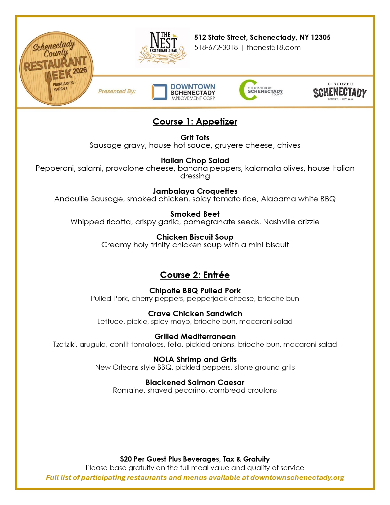 Let’s face it—you’re sick of coming up with something to cook for dinner every single night, and local restaurants are in need of a mid-winter boost in sales. A solution to both conundrums? Restaurant Week, city- or county-wide initiatives that invite customers to participating eateries for discounted prix fixe menus. And the last week of February brings with it not one, not two, but three Restaurant Week promotions in the 518.