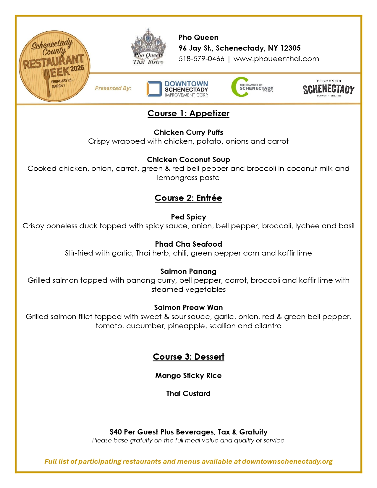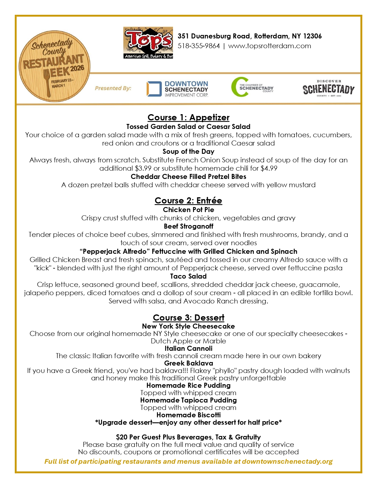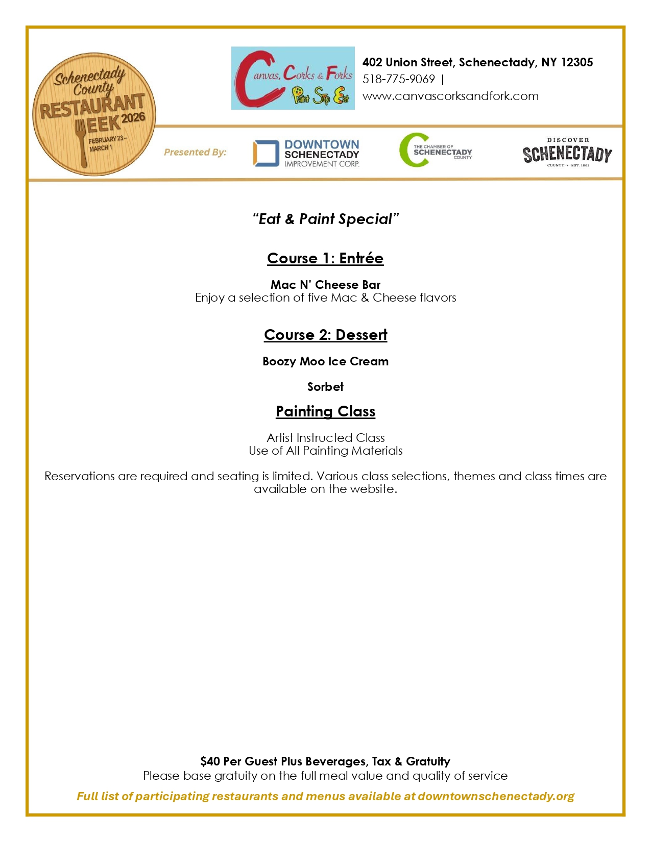 Kicking off today and running through Sunday, Schenectady County Restaurant Week involves 40 restaurants from Glenville to the Electric City serving up $20 two-course lunches and $30 or $40 three-course dinners. Here’s what’s on the menu.